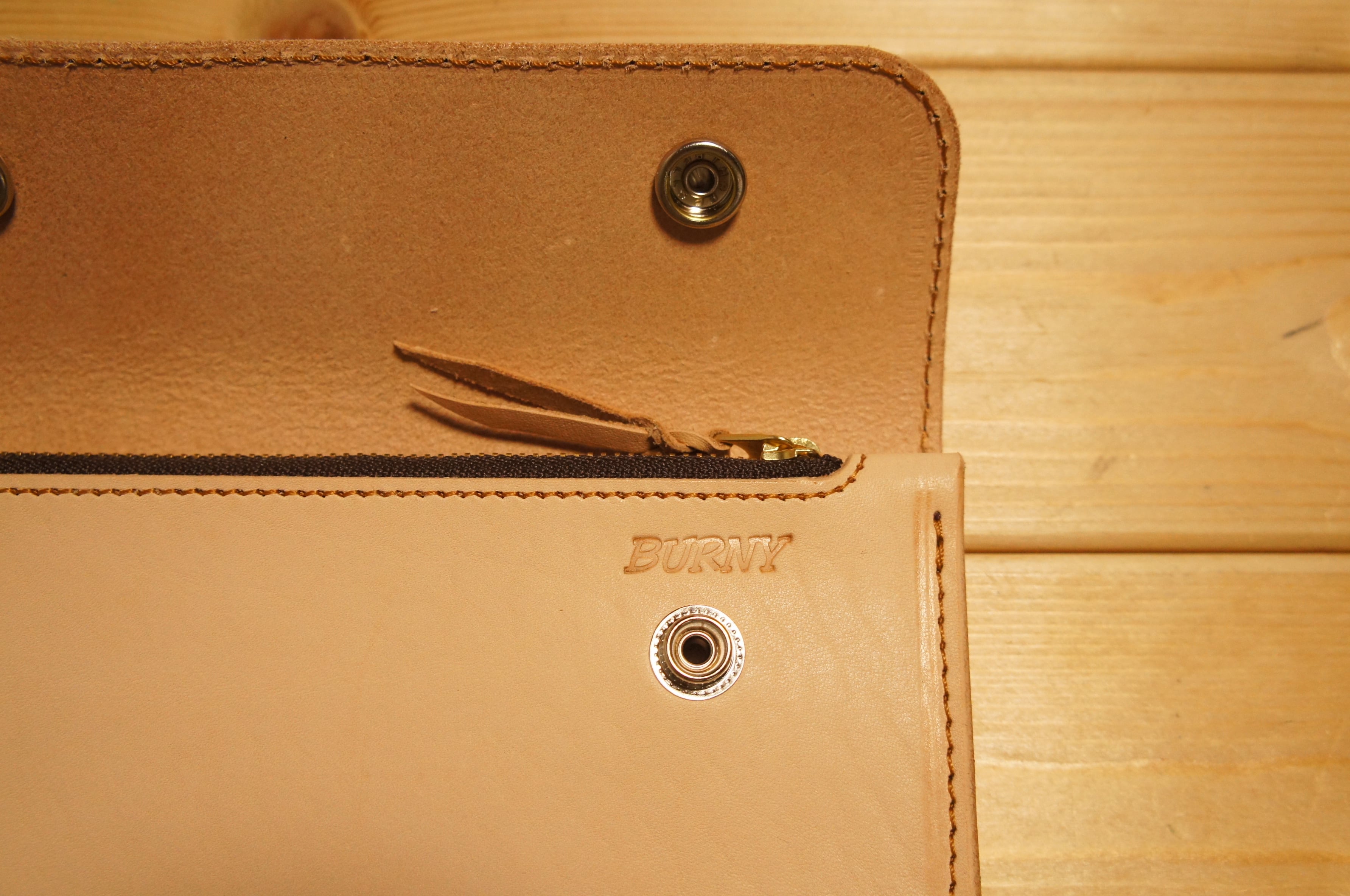 BURNY 牛ヌメ革製 ロングトラッカーウォレット RTW1K ベージュ 生成り 本革 バイカーウォレット レザー 長財布 ウォレット
