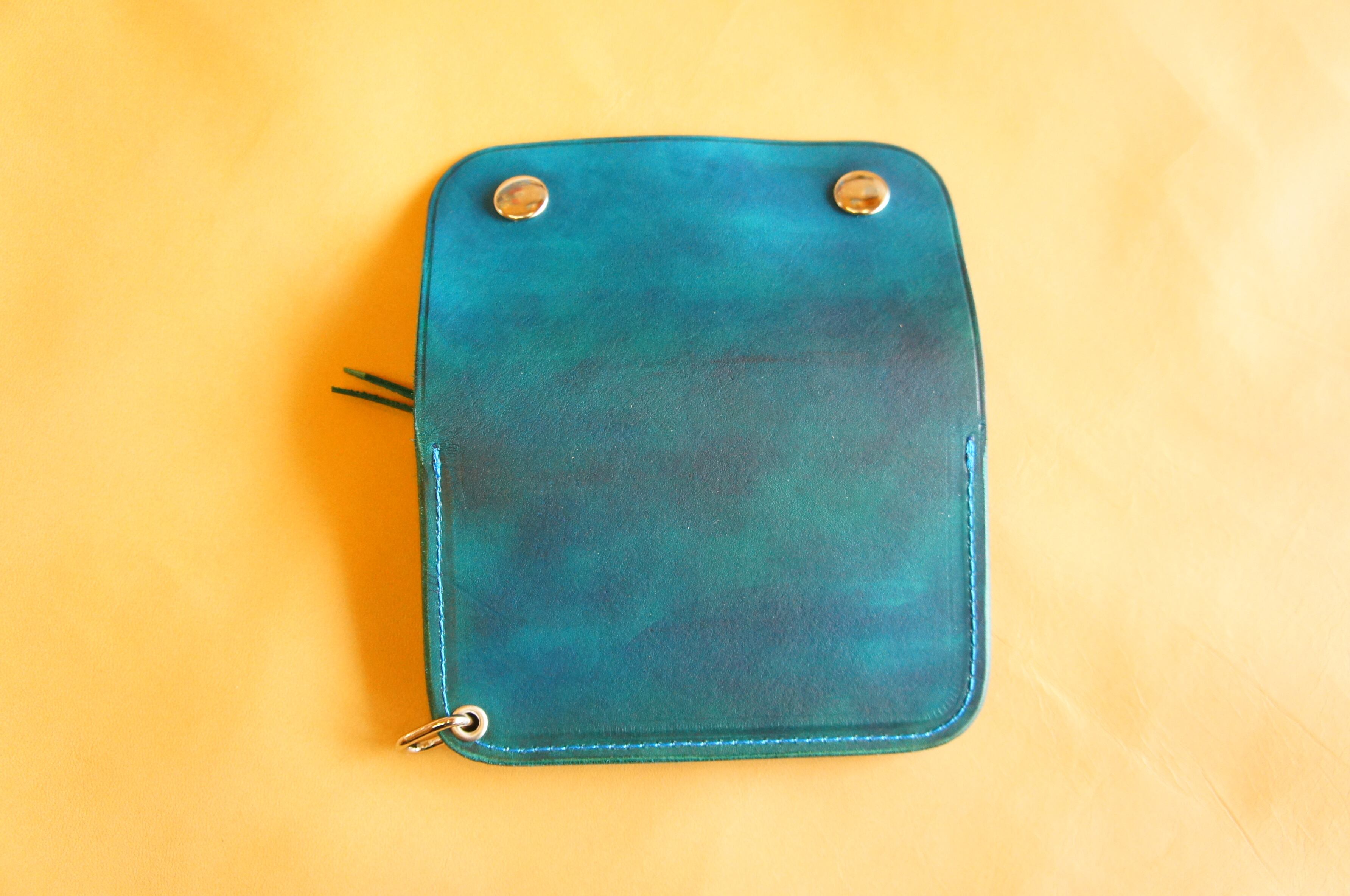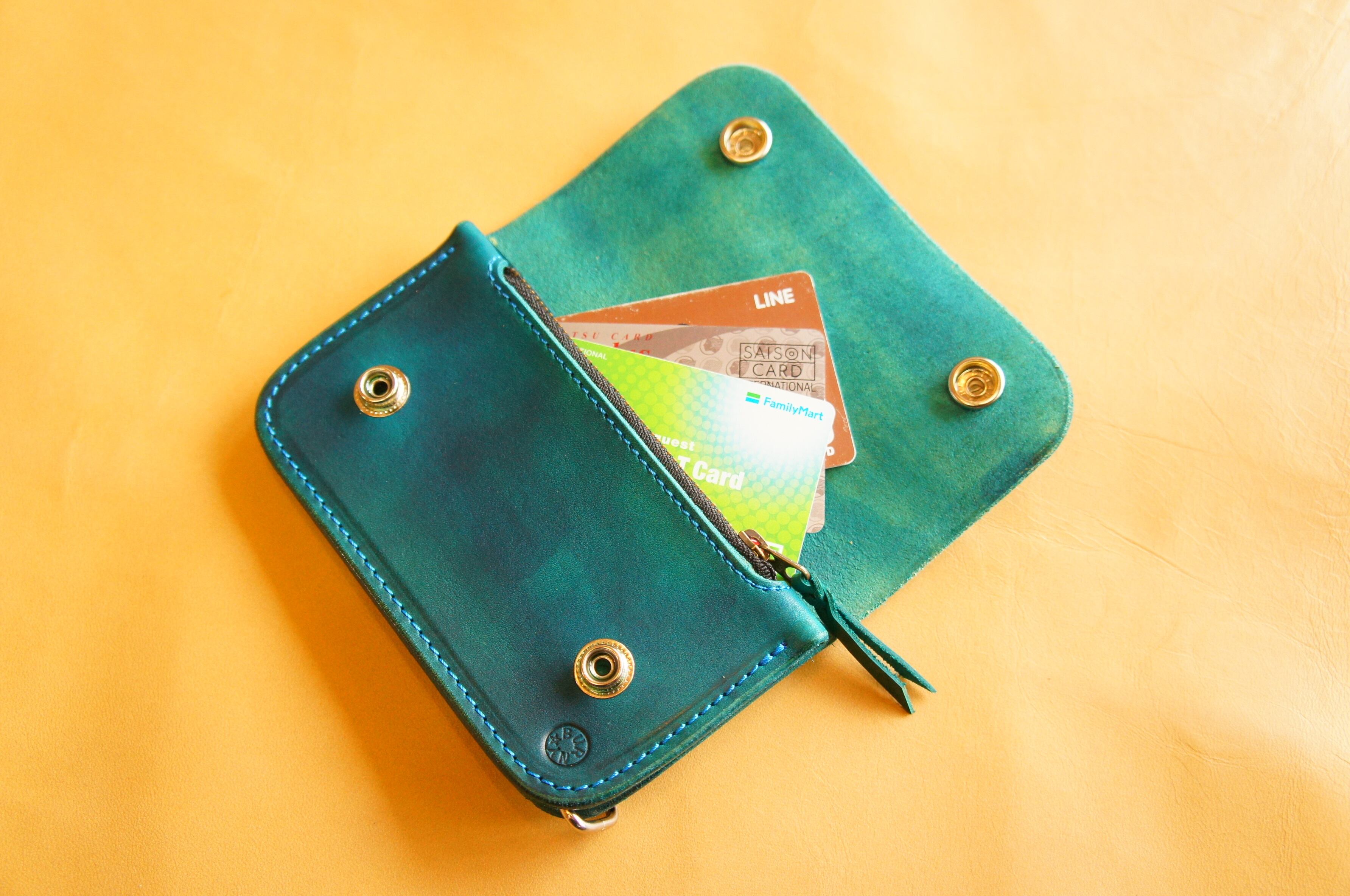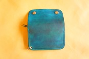 牛ヌメ革製 ミニトラッカーウォレット N086 ターコイズブルー色 BURNY 本革 バイカーウォレット レザー 財布